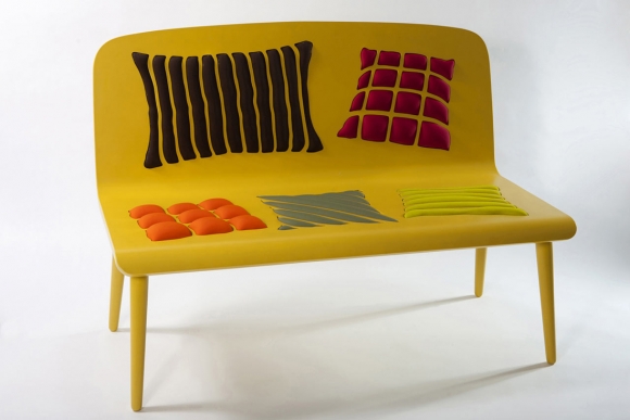 kimberly li of gblog offers that as it can be a bit tedious to re-arrange, place or deal with throw pillows scattered across your favorite seating area, so alessandra baldereschi created an alternative. in which the throw pillows (or parts and pieces of them) are placed within the couch. permanently. never moving, never shifting, they are there. no matter what.